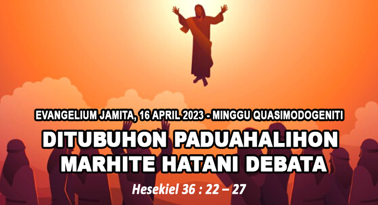 Goar ni minggunta sadarion ima quasimodogeniti na marharoroan sian bahasa Latin namarlapatan songon poso-poso na imbaru tubu, nauasan jala marsigantung sian susu na tama sian natorasna. Songoni ma hita angka na porsea, sai songon poso-poso ma hita diadopan ni Debata, nauasan di hata ni Debata, jala na marsigantung tu si ma ngolunta angka na porsea. Hombar tu ojahan minggu: Ditubuhon paduahalihon marhite hata ni Debata. Ise do hata ni Debata na dimaksud? Molo ta parateatehon dibagasan Johanes 1 : 1 + 14 dihata gorik didok : Έν αρχηην ό Λόγος καί ό Λόγοςην πρόςτον Θεον καί Θεοςην ό Λόγος. Καί όΛόγος σαρξέγενετοκαίέσκήνωσενένή μίνκαίέθάσσμεθα τήνδόεαν αυτούδόεανώζμονογενοϋζ παρα ΠατροςΠλήρηζ χαριτοςκαίάληθειας (en arche enho Logos kai ho Logos en pros ton Theon kai Theos enho Logos. Kai ho Logos sarxegeneto kai eskenosenen hemin kai etheasametha ten doxanautoudoxanhos monogenous para Patrosplerescharitos kai alethias) namarlapatan : Dimulana i nunga adong Hata i jala saor tu Debata do Hata i jala Debata do Hatai. Gabe daging ma Hata i jala maringan di tonga-tonga ni hita on, jadi huida hami ma hasangaponNa ima hasangapon ni Anak sasada na sian Amai, gok asi ni roha dohot hasintongan. Artina Jesus do nanidokna hata ni Debata i na tolap patubuhon jolma pardosai paduahalihon. Jala tubu paduahalihon na dimaksud ima songon dia hita sahat tu hambuaon ni roha na sintong dung tajalo pangurasan na sian Debata marhitehite aek pandidion dohot pandidion parohaion marhite-hite Tondi Porbadia. Amen.