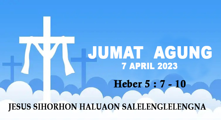 Di Jumat Agung sadarion, marnigot do hita dipangkopkop ni Tuhan Jesus Kristus Sipalua hajolmaon sian dosa dohot hamatean marhite hamamateNai, ibana do Naposo ni Debata na tumaon na bernit alani ni dosanta. Dipaandar tu hita hadirion ni Jesus i uju mangadopi angka sitaonon na bolon i Ibana. Asa gabe tiruan di angka na mangolu ima panindangionta taringot tu haporsuhan nang parungkilon di ngolunta. Debata sandiri nama di bagasan Jesus Kristus na mangggarar utang dosa ni jolma i, asa saut malua jolma sian dosa dohot hamatean. Marhite hamamate ni Jesus natigor i boi hita saor dohot Debata, di patigor Jesus hita tu Debata. Ibana do patupa haulaon diangka naporsea di Ibana. Alani lam naeng tangkas panandaonta di Tuhan Jesus asa lam bagas haporseaonta mangoloi Ibana mandapothon haluaon na manontong i.