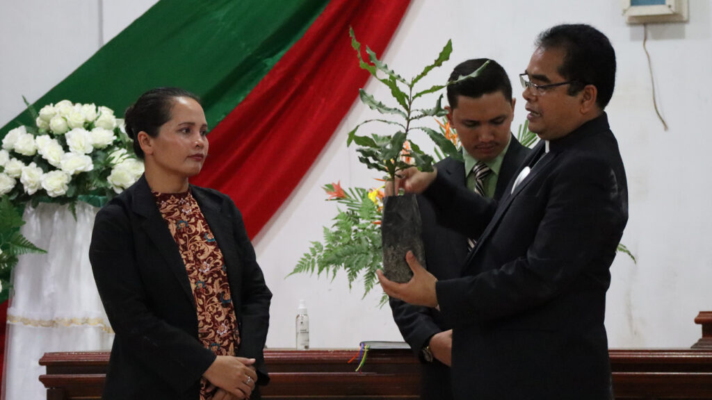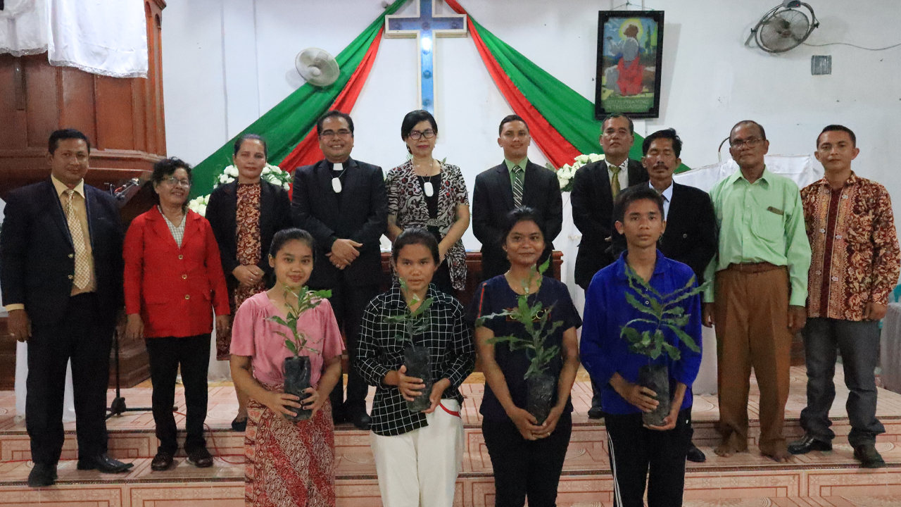 Seusai ibadah Partangiangan/evangelisasi, dilanjutkan dengan penyerahan pohon Macadamia sebagai salah satu bentuk menciptakan ramah lingkungan. Sekjend HKI menyerahkan pohon Macadamia kepada Punguan Naposo Bulung (PNB) melalui Pimpinan Resort Pdt. Anna Ria Siburian, S.Th.