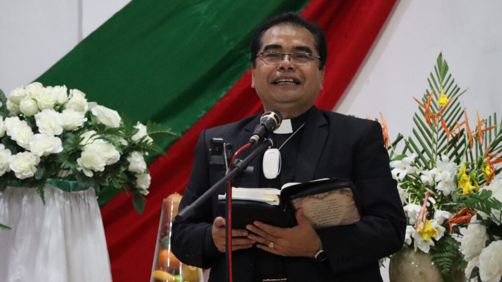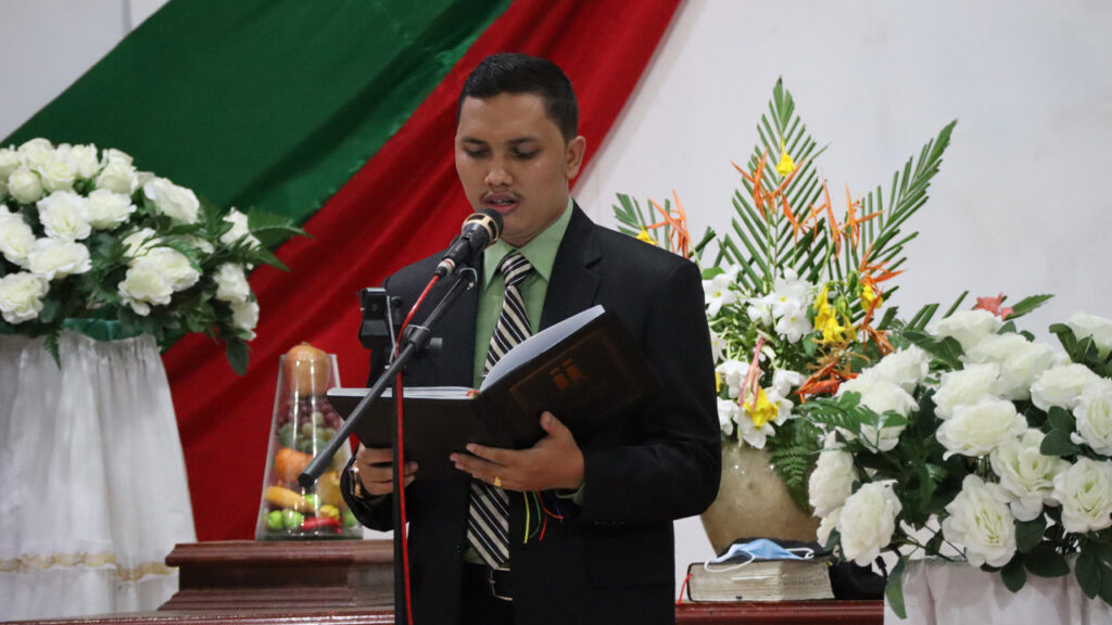 Pdt. Adrian Simbolon, S.Th saat memimpin ibadah partangiangan/evangelisasi sebagai liturgis