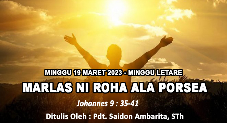 Torop dope di pudian ni ari on na mangambati donganna (dibulli) na ro tu Jesus, gabe penghambat keselamatan. Kebutaan rohani ma goarni on na gagal marnida hamuliaon ni Kristus i, gagal mangantusi dalan hasintongan jala na badia, ala nafsu jala holan pingkiranna dibahen mananda haluaon i. Gok pamaloson, kelicikan dohot parmainanon (skenario). Ndang ditanda ibana na Tuhan i do tujuan ni ngoluna, hape sai dipajolo egoisna dohot pandanganna dibahen memahami Jesus. Sai manontong ma ibana mian di hadosaon. Sotung ma hita mangantusi na marlaok dosa alai dang tatanda hadirionta na marhagaleon, dang tau hita na ringkot di haluaon, ai sai saguru di dirionta hita mareoteot. Gabe sai tading hita di habusukon dohot kecemaran, hape sai songon na mengemis. Coba ubah mindsetnya dulu bukan apa yang kita mau, melaluinkan pikirkan, kejarlah apa yang Tuhan mau, itu baru OK. Ganup na porsea boi do taarahon manghangoluhon BE no. 182 ay 3 i na mandok: ” … Kristen au, hape hutondong, dalan hamagoan i . Ndanga dong perubahan, ndang hamubaon, kan nga susa be. Ummansit dope angka halak sisongon i, nga mapitung simalolong ni dagingna alai laos mapitung muse simalolong ni rohana. Parah. Taingot ma tong: “Angka na mariluilu laho manabur, marolopolop do sogot laho manggotil. Mardalandalan pe ibana huhut tangis pausungusung boni sisaburhononhon, ro do ibana sogot marolopolop mangusung angka tibalanna. (Psalm 126:5-6)