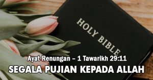 29:11 Ya TUHAN, punya-Mulah kebesaran dan kejayaan, kehormatan, kemasyhuran dan keagungan, ya, segal...