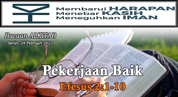 sepenuhnya anugerah Allah, bukan hasil usaha kita (2:8-9). Sesudah diselamatkan, kita baru berbuat baik sebagai wujud ucapan syukur kepada Allah dan realisasi rencana-Nya. Seorang penafsir dengan tepat mengutarakan kebenaran ini dalam kalimat: “keselamatan kita adalah untuk perbuatan baik, bukan melalui perbuatan baik.”