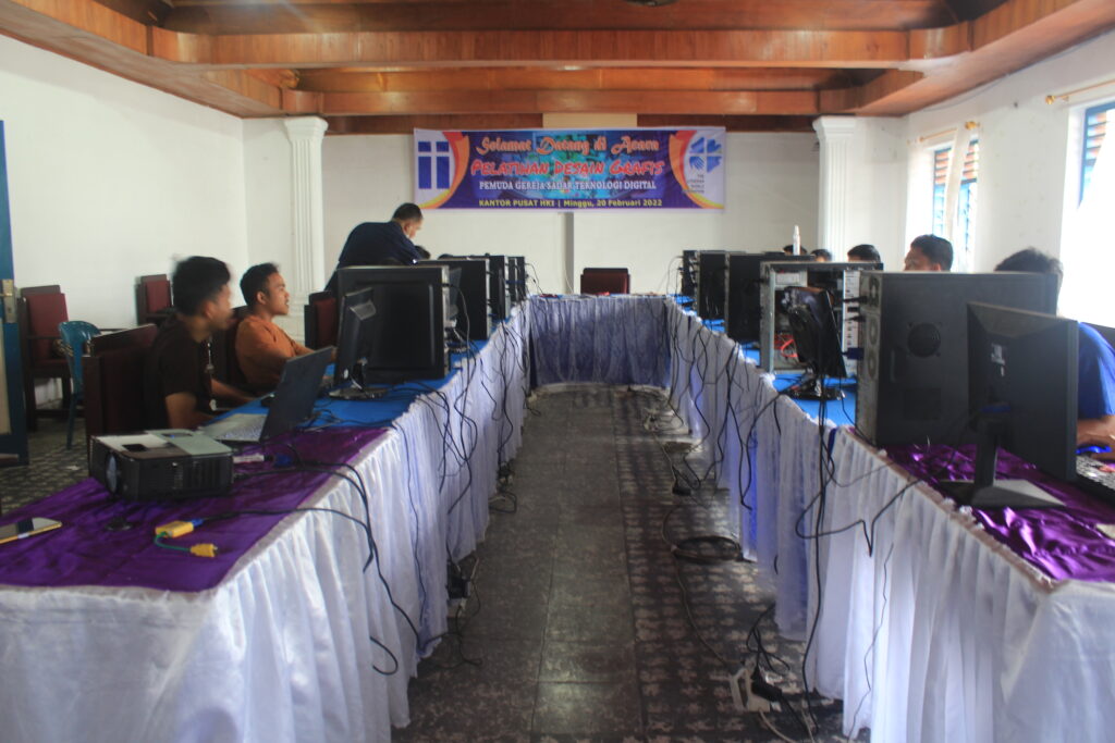 Sebagai bagian dari Program “Pemuda Gereja Sadar Teknologi Digital” yang telah dimulai di HKI Balige Kota pada 1 Februari 2022, maka kegiatan berikutnya yang menjadi lanjutan dari program ini adalah Pelatihan Desain Grafis. Kegiatan ini menyasar kepada para remaja/pemuda yang tertarik untuk mengenal dan mendalami tehnik desain grafis. Dewasa ini, di era teknologi digital, keahlian desain grafis banyak dibutuhkan dalam dunia kerja. Pelatihan ini berlangsung pada Minggu, 20 Februari 2022.
