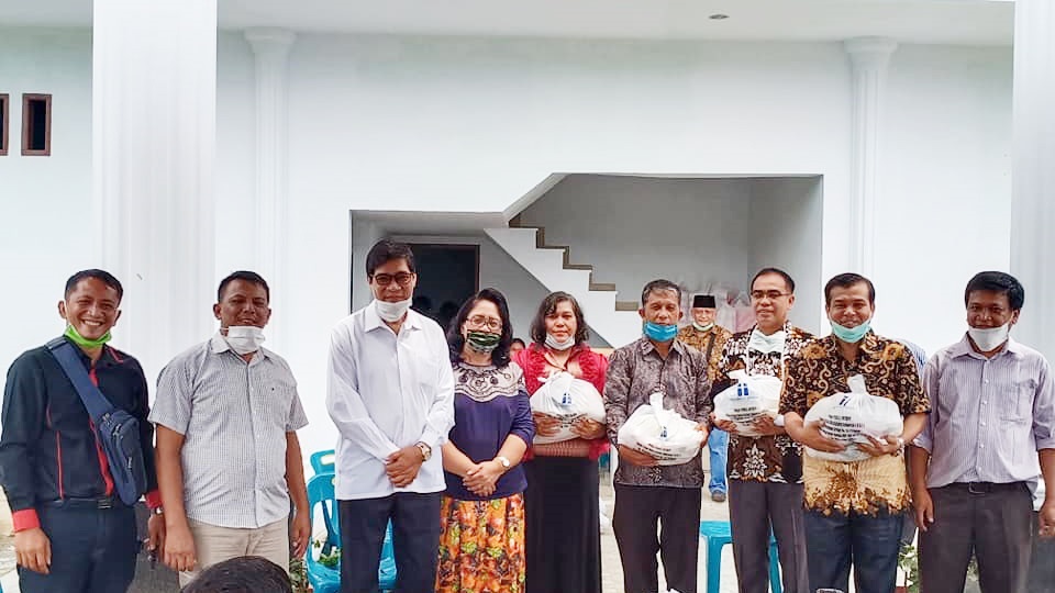Ephorus dan rombongan Posko HKI Peduli Covid-19 dari Kantor Pusat HKI bersama pelayan HKI Daerah VI Sumatera Timur II pada saat penyerahan bantuan paket sembaga kepada jemaat yang membutuhkan. Medan, 6 Mei 2020