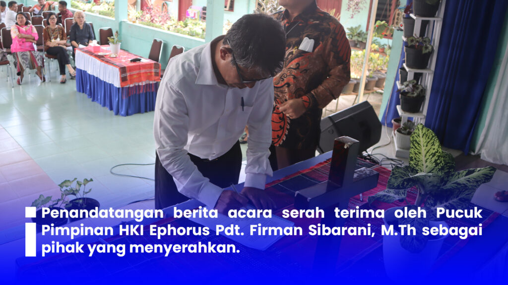 Acara serah terima diawali dengan ibadah syukuran. Dalam ibadah syukuran tersebut Pucuk Pimpinan HKI menyerahkan secara simbolis micro bus Panti Asuhan Zarfat HKI diikuti dengan penandatanganan berita acara serah terima dari Pucuk Pimpinan HKI sebagai pihak yang menyerahkan serta pihak Panti Asuhan Zarfat HKI, dalam hal ini diwakili oleh AKBP (Purn.) Robert Simanjuntak, sebagai pihak yang menerima serta disaksikan oleh para saksi, dalam hal ini diwakili oleh Pdt. Dormen Pasaribu, M.Th beserta Pdt. Rama Yanti Simorangkir, S.Th, MA mewakili Kantor Pusat HKI serta Diak. Netty Sihombing mewakili pihak Panti Asuhan Zarfat HKI.
