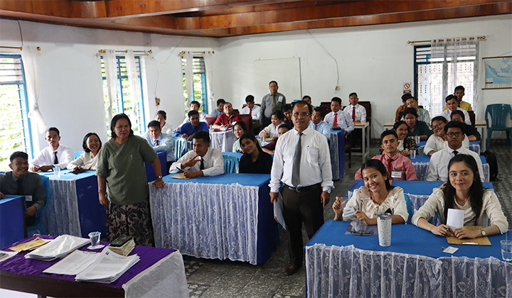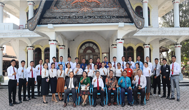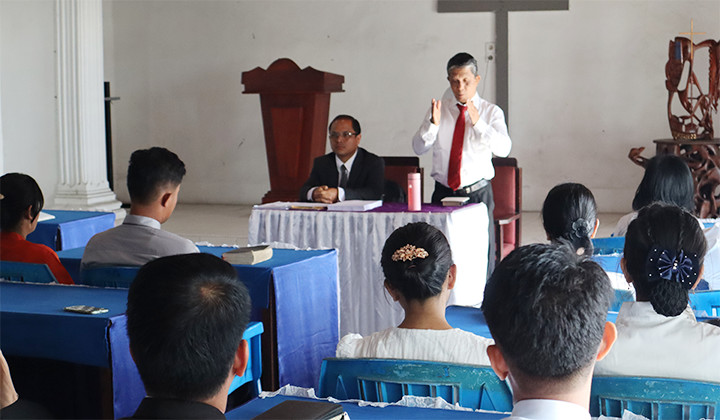 Kepala Departemen Marturia (Pdt. Dr. Jusuf Hutapea) dan Kepala Departemen Koinonia (Pdt. Salome Br. Nainggolan berfoto sesaat setelah para peserta mengikuti ujian tulisanKepala Departemen Umum (Pdt. Harianto Uly Harianja, S,H, M.Div) sedang memberikan arahan pada ujian Penerimaan Vicar HKI