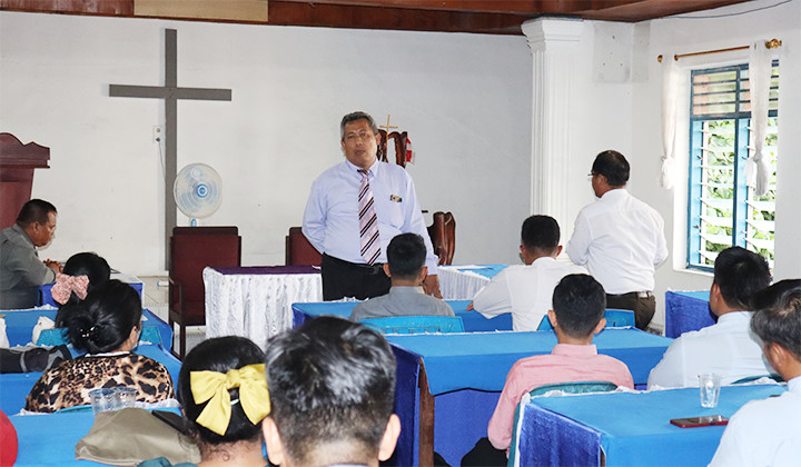 Ephorus HKI Pdt. Firman Sibarani, MTh sedang memberikan arahan kepada para peserta ujian vicar sebelum ujian dimulai